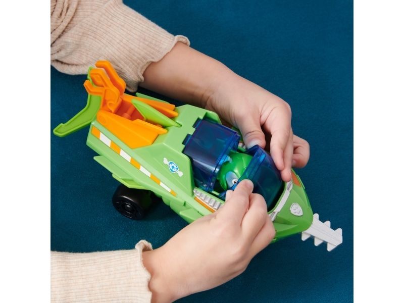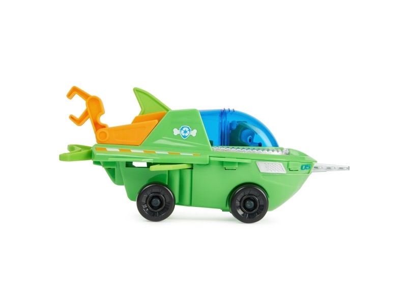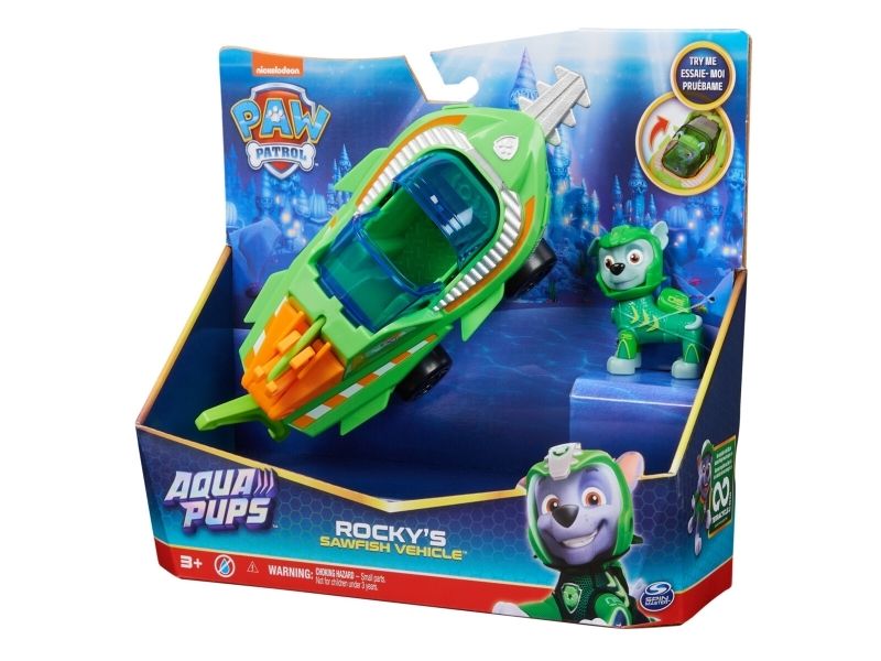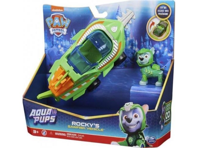 Samarbeta med Rocky på actionfyllda räddningsuppdrag i hans Aqua Pups-sågfiskräddningsfordon! Rocky som har på sig sin gröna Aqua Pups-våtdräkt och -hjälm är redo för superladdade räddningar i låtsashaven! Rockys sågfiskfordon har en spännande förvandlingsfunktion! Förvandla fordonet till räddningsläge genom att helt enkelt placera Rocky i förarsätet och dra för taket så att vingen och ryggfenan aktiveras. När det dyker upp problem kan du snabbt förvandla till räddningsläge och susa iväg på räddningsuppdrag. Använd sen den rörliga klosvansen och sågfiskbladet för att röja undan alla hinder! Skapa PAW-tastiska äventyr med Rocky’s Sawfish Rescue-fordon! Sen, för att få ännu fler spännande serieinspirerade uppdrag, kan du samla på alla Aqua Pups-figurer och -leksaksfordon (säljs separat), för oändliga timmar med actionfyllda äventyr! Med PAW Patrol-leksaker kan barn utforska sin fantasi och utveckla sina motoriska färdigheter genom låtsaslek när de väcker liv i sina favoritscener från serien! Actionfigurer, leksaksbilar, lekset och gosedjur från PAW Patrol är perfekta leksaker för pojkar och flickor från 3 år – så nu är det dags bjuda hem spänningen från PAW Patrol: Aqua Pups!