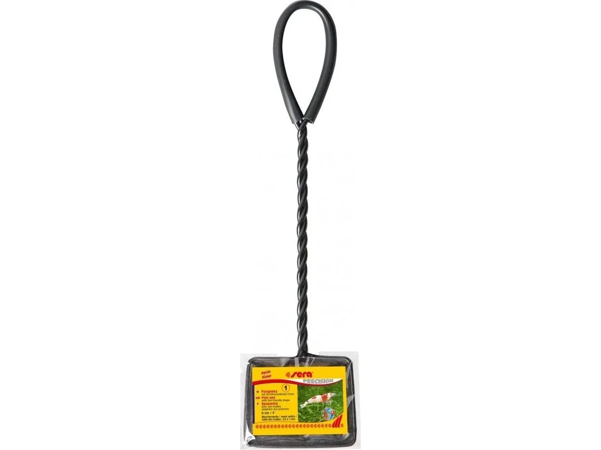 En smidig håv med svart finmaskigt nät som underlättar infångandet av fisk