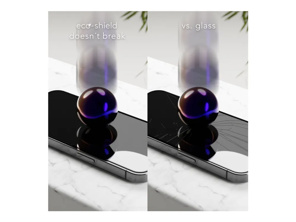 Tired of broken screen protectors? eco-shield is an unbreakable screen protector made from recycled materials (rPET) & 100% recyclable without compromising on protection and quality! This easy application screen protector reacts like your phone's own screen and fits perfectly on your device. Incredibly slim at just 0.4mm, you'll hardly notice the ultra-tough layer of protection. Combine it with a recycled phone case for sustainable 360-degree protection.