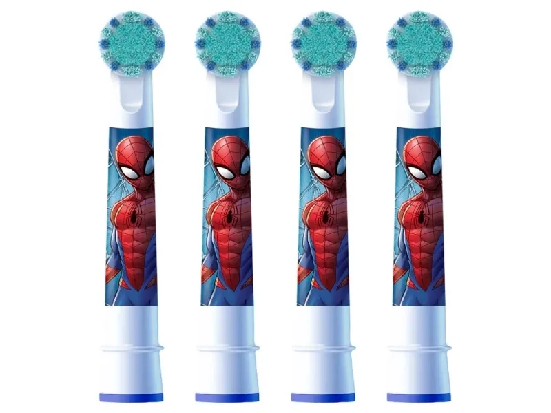 Oral-B 80352671. Number of brush heads included: 4 pc(s), Product colour: Blue, White, Theme: Spider-Man. Weight: 21.8 g. Package width: 18 mm, Package depth: 60 mm, Package height: 220 mm. Quantity per pack: 4 pc(s), Master (outer) case width: 126 mm, Master (outer) case length: 149 mm. Inner package quantity: 6 pc(s)