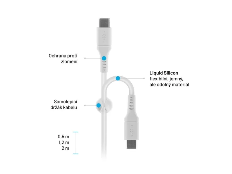 FIXED USB-C-kabeln ger en robust anslutningslösning för olika enheter och säkerställer tillförlitlig dataöverföring med en datahastighet på 480 Mbps. Kabeln är tillverkad av flytande silikon och är utformad för flexibilitet och hållbarhet, med en trasselfri och vridsäker konstruktion. USB Power Delivery-funktionen möjliggör effektiv strömöverföring på upp till 60 W, vilket gör den lämplig för laddning och strömförsörjning av enheter samtidigt som den har en snygg design.