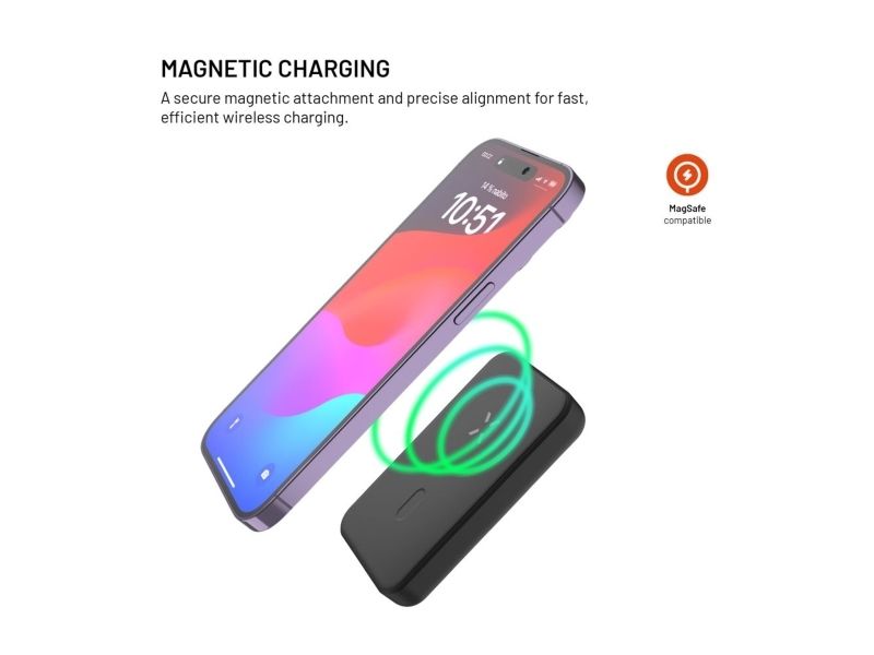 FIXED MagZen 2nd Generation trådlös powerbank är utformad för dem som vill ha bekvämlighet och effektivitet när de laddar sina enheter. Den har ett generöst litiumpolymerbatteri på 10.000 mAh som ger ström till mobiltelefoner när du är på språng. Det mjuka ytterhöljet i silikon ger en kompakt design som är både snygg och funktionell, vilket garanterar hållbarhet samtidigt som den är lätt att bära. Med sin MagSafe-kompatibilitet ger den här powerbanken en säker anslutning som förhindrar oavsiktliga glidningar vid trådlös laddning.
