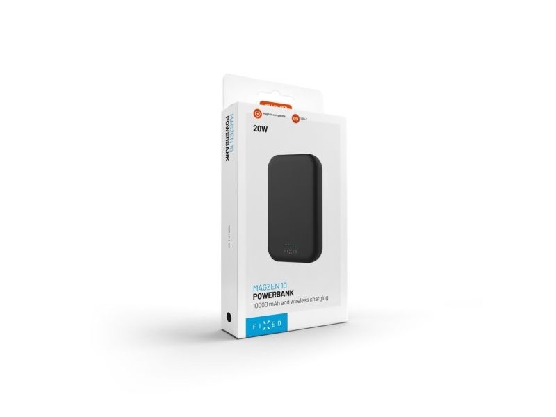 FIXED MagZen - 2:a generationen - trådlös powerbank - Li-pol - 10000 mAh - 38 Wh - 20 Watt - 3 A - PD 3.0 (USB-C) - svart