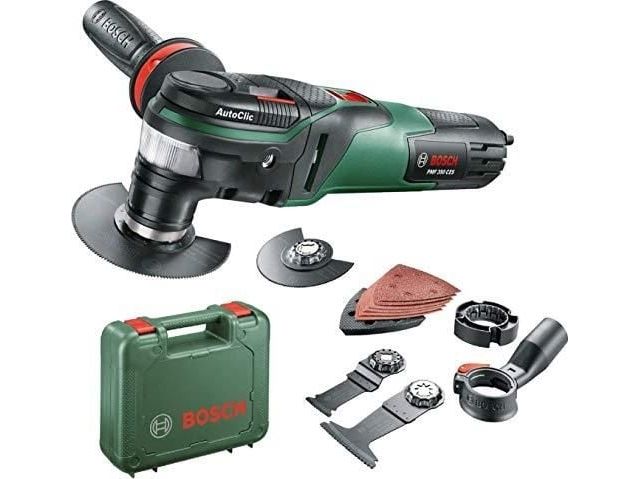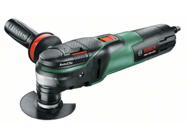 The versatile and powerful oscillating PMF 350 CES multifunction tool is the ultimate choice to tackle a wide range of DIY projects. Its 350 W motor delivers the power to handle tough jobs. Electronic speed preselection enables speeds to be matched to the needs of each job and material. For optimal visibility, a 180° light band provides consistent illumination. Quick and easy, 3-second accessory changes are possible thanks to Bosch AutoClic.
