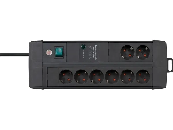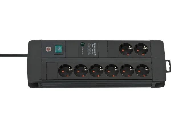 The Premium-Line 8-way extension lead with 3m cable impresses with its quality and safety in all areas. The surge protection socket strip protects valuable devices from surges during thunderstorms, lightning strikes etc. with a max. leakage current of up to 60,000 A. It not only has increased protection against accidental contact, but also impresses with the following features: