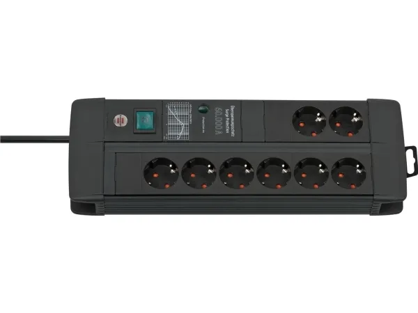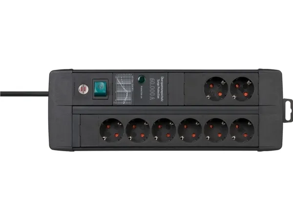 The Premium-Line 8-way extension lead with 3m cable impresses with its quality and safety in all areas. The surge protection socket strip protects valuable devices from surges during thunderstorms, lightning strikes, etc. with a max. leakage current of up to 60,000 A. It not only has increased touch protection, but also convinces with the following features: