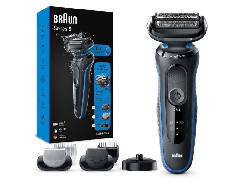 Included with the shaver are multiple accessories to enhance your grooming routine, including a charging stand, beard trimming attachments with different comb lengths, and a body groomer attachment. The AutoSense technology adjusts power according to the density of the hair for a more efficient shave. With the Braun Series 5 51-B4650cs, experience a customizable grooming solution that adapts to personal preferences.