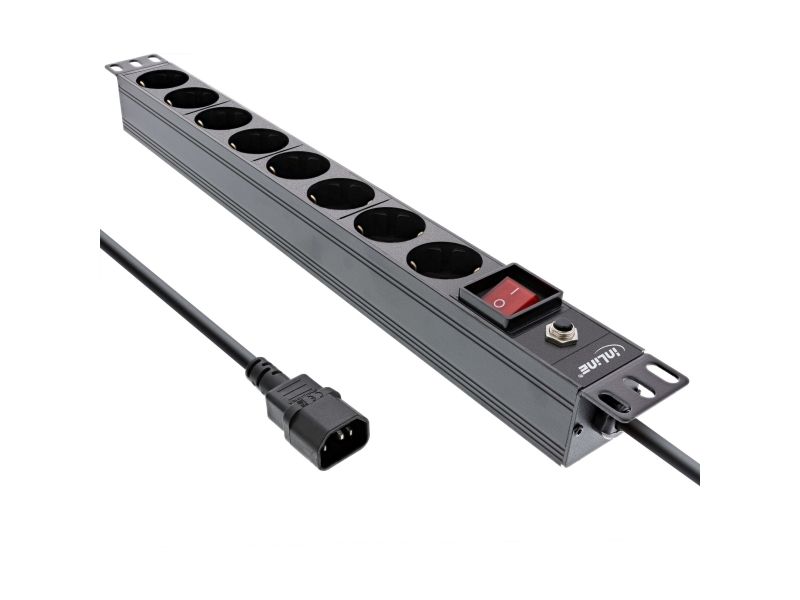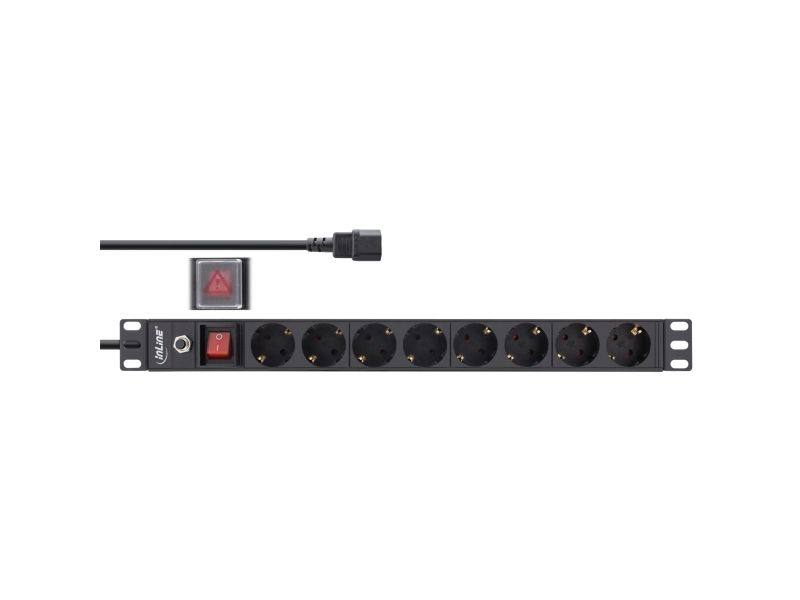 InLine InLine® 19" grenuttag, 8-vägs CEE7/7, C14-anslutning, överbelastningsskydd