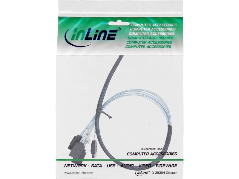 InLine 27646B, 1 m, SFF-8654 hane, 4 x SATA 7-stift, rak, rak, hane/hane