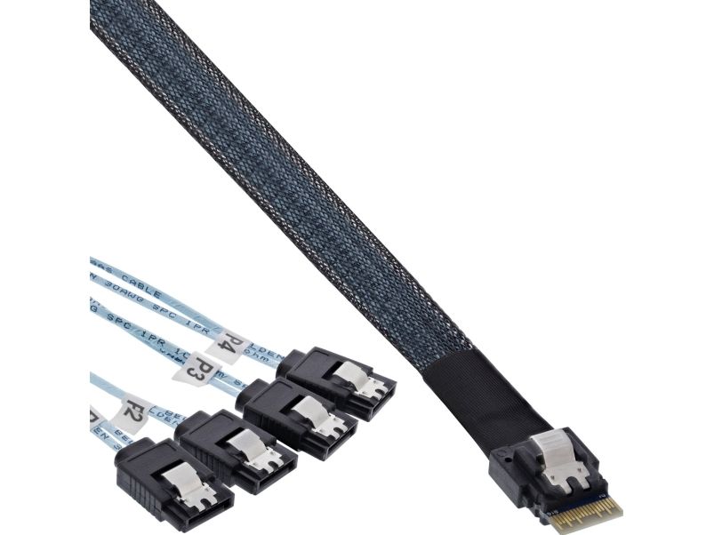 InLine Slim SAS-kabel, SFF-8654 till 4x SATA 7-pin, 12Gb/s, 1 m