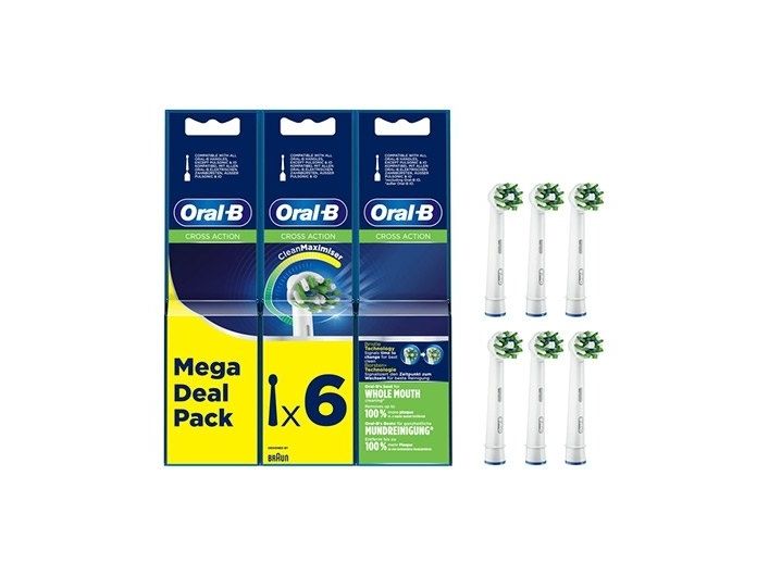 Oral-B CrossAction CleanMaximiser - Extra tandborsthuvud - till tandborste - vit (paket om 6) - för Pro 2000, 2500, 4000, 4500, 600, 650, 700, 7000