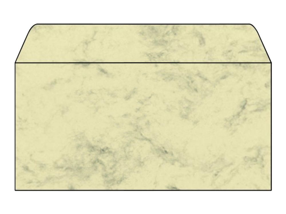 Marbled envelope, beige, with print on the inside, to match the marbled folding cards and papers. The gummed envelopes without a window are suitable for printing with inkjet and laser printers and copiers. Box contents: 50 DL envelopes.
