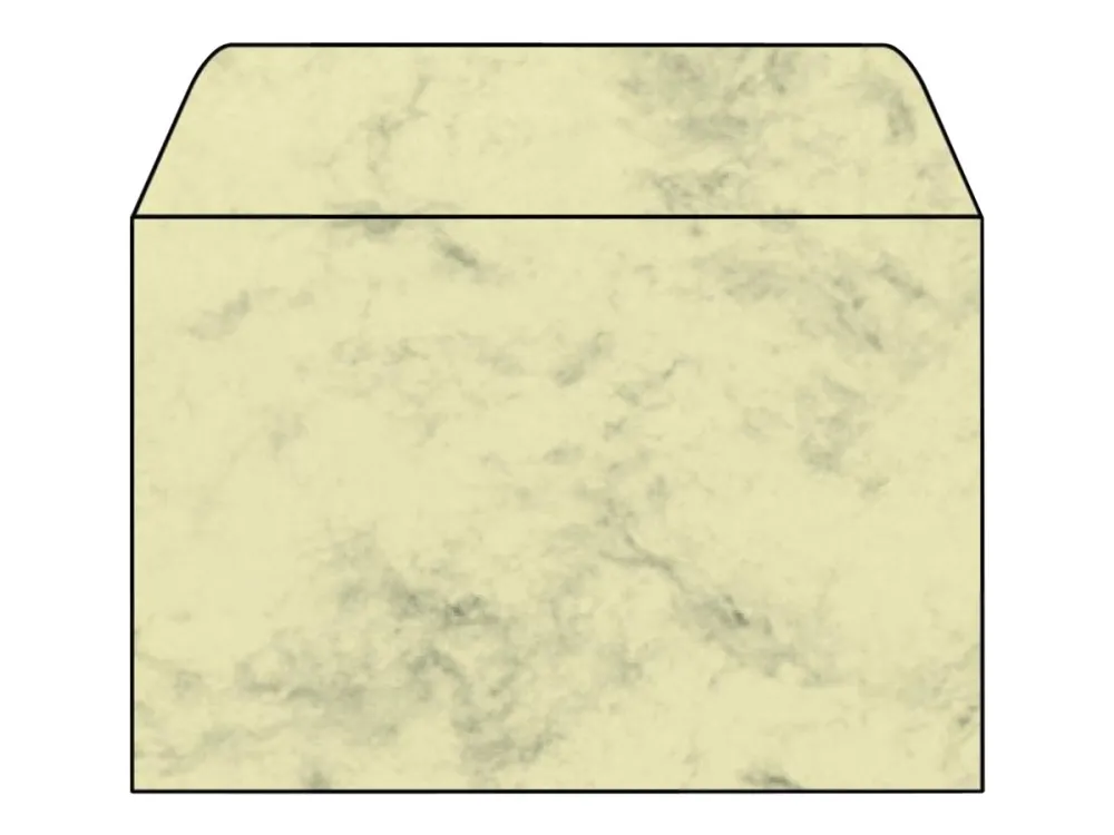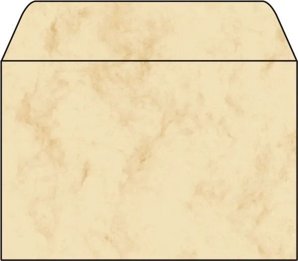 Marbled envelopes, beige, with print on the inside, to match the marbled folding cards and papers. The gummed envelopes without a window are suitable for printing with inkjet and laser printers and copiers. Box contents: 25 C6 envelopes.