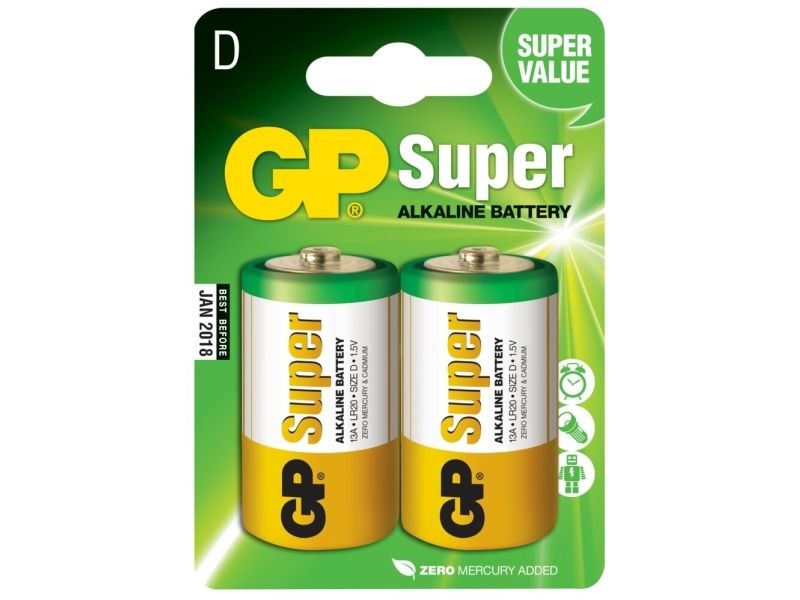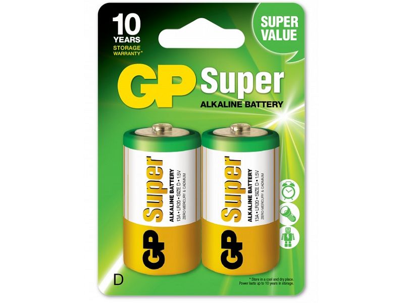 GP Batteries Super Alkaline D-batteri, 13A/LR20, 2-pack