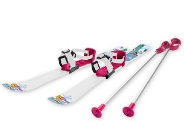 Skidor för barn 70 cm med skidstavar, rosa