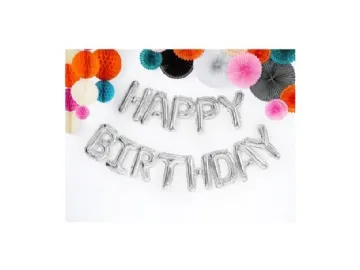 Folieballon Happy Birthday, sølv