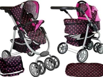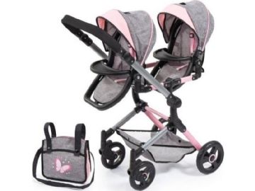 Dockvagn barnvagn rosa/grå med väska 21533AD