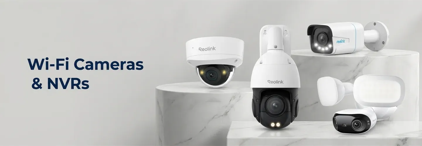 Reolink Wi-Fi-overvågningskameraer & NVR giver fleksibel og stabil videoovervågning uden behov for netværkskabler. Med skarp HD- eller 4K-opløsning, intelligent